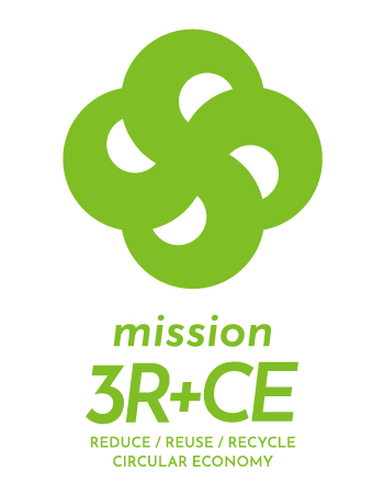 3R+CEとは、今までの資源を大切に使うための考え方「3R」1.Reduce(ゴミを減らす)。2.Reuse(くりかえし使う)。3.Recycle(再生する)。に加え、経済のしくみとして世界的に注目されている「Circular Economy(資源循環経済システム)」にも取り組むというミッションの総称です。