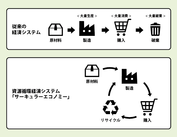 大量生産、大量破棄から、持続可能な社会をつくる循環経済システムへ。